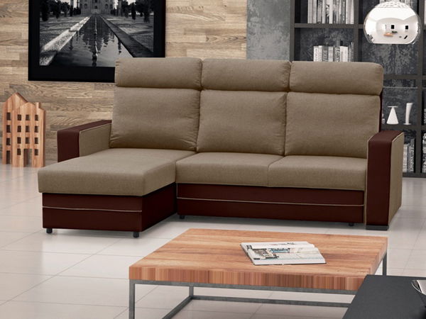 Rohová sedací souprava Malva (béžová + hnědá) (L)