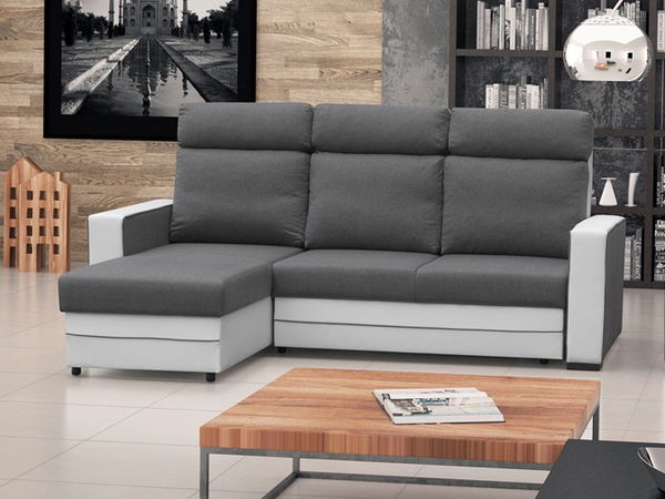 Rohová sedací souprava Malva (šedá + bílá) (L)