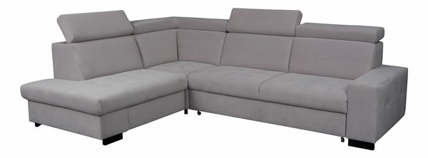 Stylová rohová sedačka Manfield s úložným prostorem má polohovatelné opěrky hlavy. Úložný prostor má rozměry: 70x69x15 cm.