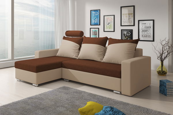 Rohová sedací souprava Maratto (hnědá + béžová) (L)