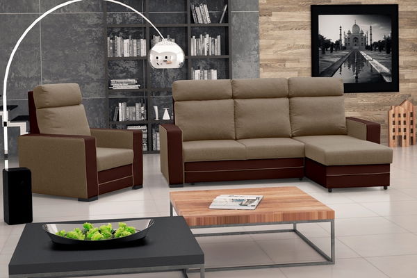 Rohová sedací souprava Maurita (světlohnědá + tmavě hnědá) (P)