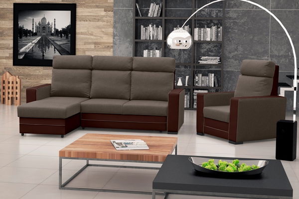 Rohová sedací souprava Maurita (tmavě hnědá) (L)