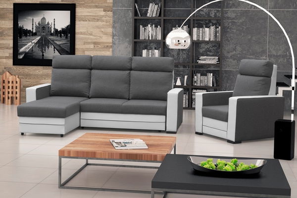Rohová sedací souprava Maurita (tmavě šedá + bílá) (L)