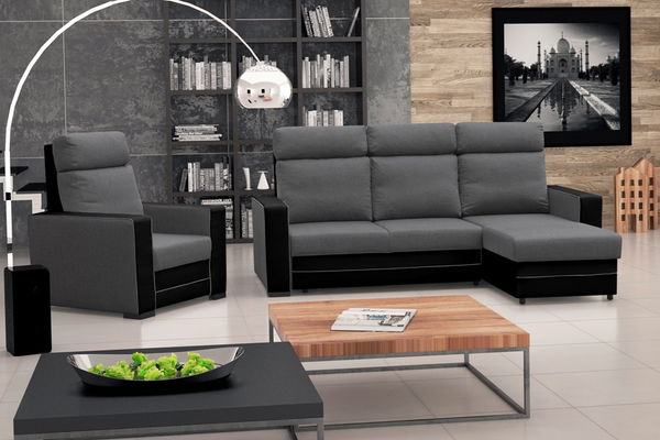 Rohová sedací souprava Maurita (tmavě šedá + černá) (P)