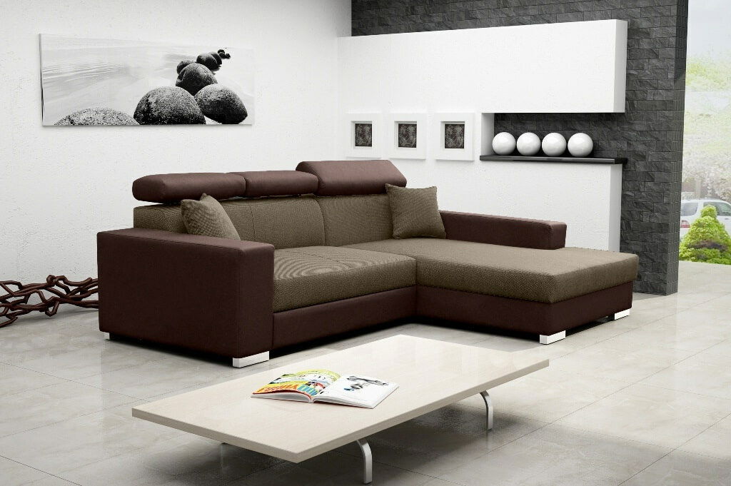 Rohová sedací souprava Mayola (světle hnědá + tmavě hnědá) (P)