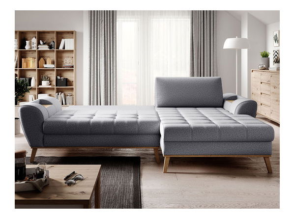 ZobrazitRozkládací rohová pohovka je ideální volbou pro ty, kteří hledají pohodlí a styl. Rozkládací pohovka Mitidera je mimořádně pohodlný a originální kus nábytku, který je vybaven praktickými funkcemi. Má nádobu na lůžkoviny a funkci spaní, takže spojuje pohodlí a funkčnost. Díky funkci automatického rozkládání můžete rohovou pohovku rychle a jednoduše přeměnit na místo pro každodenní odpočinek. Opěrka zad je tvořena pohyblivými polštáři s pěnovou výplní, které jsou měkké a pohodlné. Po stranách nábytku jsou dřevěné poličky, které se výborně hodí k sezení v kině - můžete na ně pohodlně položit sklenici s nápojem nebo misku s občerstvením. Moderní rohová pohovka Mitidera se vyznačuje zajímavým designem. Prošívané sedátko mu dodává neobvyklý vzhled, zatímco vysoké dřevěné nohy dodávají nábytku lehkost. Najde si senzační místo ve stylově zařízeném obývacím pokoji. Rozměry: délka: 282 cm, šířka: 175 cm, výška: 86 cm, plocha na spaní: 224 x 128 cm, rozměry kontejneru: délka: 127 cm, šířka: 62 cm, výška: 14 cm Rohová strana: levá nebo pravá Provedení: rám: borová dřeva N30, opěradlo: polyuretanová pěna N2444, rohová pohovka je rozkládací, má funkci spánku, automatické usnadnění rozkládání, typ DL, nádoba na lůžkoviny, vysoké dřevěné nohy, po stranách nábytku jsou malé dřevěné poličky o rozměrech 27 x 17 cm, opěradlo ve formě pohyblivých polštářů, van stojící rohová jednotka (zadní část čalouněná látkou) Záruka: 24 měsíců