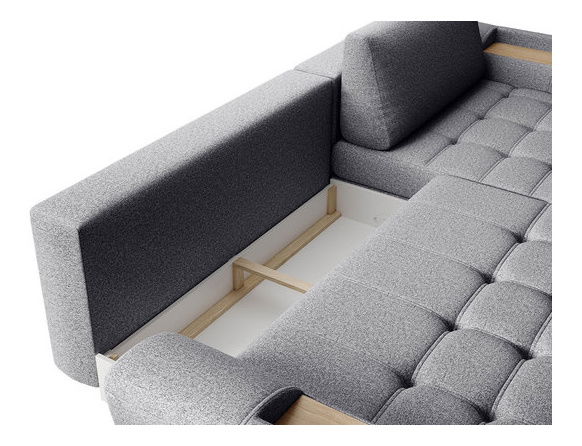 ZobrazitRozkládací rohová pohovka je ideální volbou pro ty, kteří hledají pohodlí a styl. Rozkládací pohovka Mitidera je mimořádně pohodlný a originální kus nábytku, který je vybaven praktickými funkcemi. Má nádobu na lůžkoviny a funkci spaní, takže spojuje pohodlí a funkčnost. Díky funkci automatického rozkládání můžete rohovou pohovku rychle a jednoduše přeměnit na místo pro každodenní odpočinek. Opěrka zad je tvořena pohyblivými polštáři s pěnovou výplní, které jsou měkké a pohodlné. Po stranách nábytku jsou dřevěné poličky, které se výborně hodí k sezení v kině - můžete na ně pohodlně položit sklenici s nápojem nebo misku s občerstvením. Moderní rohová pohovka Mitidera se vyznačuje zajímavým designem. Prošívané sedátko mu dodává neobvyklý vzhled, zatímco vysoké dřevěné nohy dodávají nábytku lehkost. Najde si senzační místo ve stylově zařízeném obývacím pokoji. Rozměry: délka: 282 cm, šířka: 175 cm, výška: 86 cm, plocha na spaní: 224 x 128 cm, rozměry kontejneru: délka: 127 cm, šířka: 62 cm, výška: 14 cm Rohová strana: levá nebo pravá Provedení: rám: borová dřeva N30, opěradlo: polyuretanová pěna N2444, rohová pohovka je rozkládací, má funkci spánku, automatické usnadnění rozkládání, typ DL, nádoba na lůžkoviny, vysoké dřevěné nohy, po stranách nábytku jsou malé dřevěné poličky o rozměrech 27 x 17 cm, opěradlo ve formě pohyblivých polštářů, van stojící rohová jednotka (zadní část čalouněná látkou) Záruka: 24 měsíců