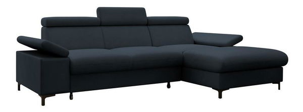 Chtěli byste si po dlouhém pracovním dni pohodlně odpočinout v obýváku? Potřebujete ergonomický nábytek, který nebude bolet vaše záda? Vyzkoušejte kolekci! Je ve vašem obývacím pokoji místo jen pro nábytek, který spojuje krásu a praktičnost? Vyzkoušejte tedy rohovou sedačku ve voděodolné látce, která vás potěší v každém detailu. Začněme jeho elegantním vzhledem – pevným sedákem a opěradlem doplněným o široké područky a opěrku hlavy. Celé je to čalouněné módní látkou připomínající samet, která naplní váš interiér jemnou září. Pro vaše maximální pohodlí je již zmíněná opěrka hlavy vybavena praktickou funkcí nastavení, která vám umožní dokonale ji přizpůsobit křivkám vašeho těla a ochrání vás tak před nepříjemnými bolestmi krku. Rohová sedačka vám umožní zorganizovat i další ubytování pro vaše přátele. To vše díky praktické funkci spánku, kterou rychle využijete díky automatickému rozkladu. Do kontejneru na ložní prádlo, ve kterém je tento univerzální kus nábytku, jednoduše vejdete doplňkovou sadu polštářů a peřin, jakož i další drobnosti. Celé je to čalouněno látkou vyrobenou voděodolnou technologií, což znamená, že náhodně rozlitý nápoj se místo vsáknutí srazí na povrchu nábytku. Díky pevnému tvaru a elegantnímu čalounění se bude skvěle hodit do vkusných interiérů zařízených v glamour stylu, ačkoli vám nic nebrání oživit si jím moderní minimalistickou místnost. Detaily produktu: moderní rohová sedačka s područkami, pravý nábytek, výška opěradla: 43-58 cm, sedák a opěradlo z polyuretanové pěny, která jim dodává výjimečnou měkkost, sedák podepřený vlnovými pružinami zvyšujícími jeho pružnost, opěradlo vyztužené čalouněním pás, rohová sedačka je vybavena pohyblivými opěrkami hlavy, které vám pomohou uvolnit svaly po dlouhém pracovním dni, praktická funkce spánku, snadné rozkládání díky automatické funkci, nábytek je vybaven zásobníkem na lůžkoviny, plocha na spaní: 200 cm × 130 cm, rohová sedačka je vyrobena z látky Salvador 05 v elegantním odstínu námořnické modři, Salvador je na dotek příjemný samet s povrchem pokrytým jemným chmýřím. Poskytuje pocit tepla, takže je ideální pro čalounění nábytku v obýváku. Materiál je odolný vůči oděru, tření a žmolkování, jakož i dobrá odolnost vůči světlu. Waterproof Technology zabraňuje rychlé absorpci tekutin a Flame Retardant Technology chrání před náhodným vznícením při kontaktu s malým plamenem. Salvador je přátelský k dětem a zvířatům.