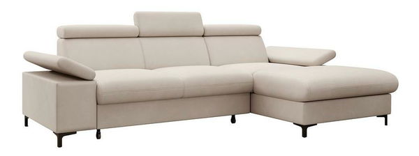 Chtěli byste si po dlouhém pracovním dni pohodlně odpočinout v obýváku? Potřebujete ergonomický nábytek, který nebude bolet vaše záda? Vyzkoušejte kolekci! Je ve vašem obývacím pokoji místo jen pro nábytek, který spojuje krásu a praktičnost? Vyzkoušejte tedy rohovou sedačku ve voděodolné látce, která vás potěší v každém detailu. Začněme jeho elegantním vzhledem – pevným sedákem a opěradlem doplněným o široké područky a opěrku hlavy. Celé je to čalouněné módní látkou připomínající samet, která naplní váš interiér jemnou září. Pro vaše maximální pohodlí je již zmíněná opěrka hlavy vybavena praktickou funkcí nastavení, která vám umožní dokonale ji přizpůsobit křivkám vašeho těla a ochrání vás tak před nepříjemnými bolestmi krku. Rohová sedačka vám umožní zorganizovat i další ubytování pro vaše přátele. To vše díky praktické funkci spánku, kterou rychle využijete díky automatickému rozkladu. Do kontejneru na ložní prádlo, ve kterém je tento univerzální kus nábytku, jednoduše vejdete doplňkovou sadu polštářů a peřin, jakož i další drobnosti. Celé je to čalouněno látkou vyrobenou voděodolnou technologií, což znamená, že náhodně rozlitý nápoj se místo vsáknutí srazí na povrchu nábytku. Díky pevnému tvaru a elegantnímu čalounění se bude skvěle hodit do vkusných interiérů zařízených v glamour stylu, ačkoli vám nic nebrání oživit si jím moderní minimalistickou místnost. Detaily produktu: moderní rohová sedačka s područkami, pravý nábytek, výška opěradla: 43-58 cm, sedák a opěradlo z polyuretanové pěny, která jim dodává výjimečnou měkkost, sedák podepřený vlnovými pružinami zvyšujícími jeho pružnost, opěradlo vyztužené čalouněním pás, rohová sedačka je vybavena pohyblivými opěrkami hlavy, které vám pomohou uvolnit svaly po dlouhém pracovním dni, praktická funkce spánku, snadné rozkládání díky automatické funkci, nábytek je vybaven zásobníkem na lůžkoviny, plocha na spaní: 200 cm × 130 cm, rohová sedačka je vyrobena z látky Salvador 01 v nadčasové světle béžové barvě, Salvador je na dotek příjemný samet s povrchem pokrytým jemným chmýřím. Poskytuje pocit tepla, takže je ideální pro čalounění nábytku v obýváku. Materiál je odolný vůči oděru, tření a žmolkování, jakož i dobrá odolnost vůči světlu. Waterproof Technology zabraňuje rychlé absorpci tekutin a Flame Retardant Technology chrání před náhodným vznícením při kontaktu s malým plamenem. Salvador je přátelský k dětem a zvířatům.