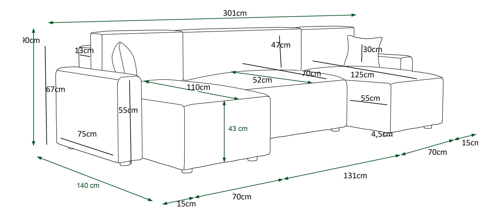 Rohová sedací souprava Mirage U Bis Sed (cihlová) je moderní a pohodlný nábytek pro váš obývací prostor. Souprava se skládá z rohové a dvěma jednotlivých sedáků, které poskytují dostatek místa pro celou rodinu a hosty. Výška sezení je regulovatelná v rozmezí 67-90 cm, čímž zajistí pohodlné sezení pro různé postavy. Souprava má šířku 301 cm a hloubku 140 cm, což je ideální pro prostorné obývací pokoje. Jeho jednoduchý, ale elegantní design a teplá cihlová barva se hodí ke každému interiéru. Získejte si pohodlí a kvalitu s touto moderní rohovou sedací soupravou Mirage U Bis Sed.