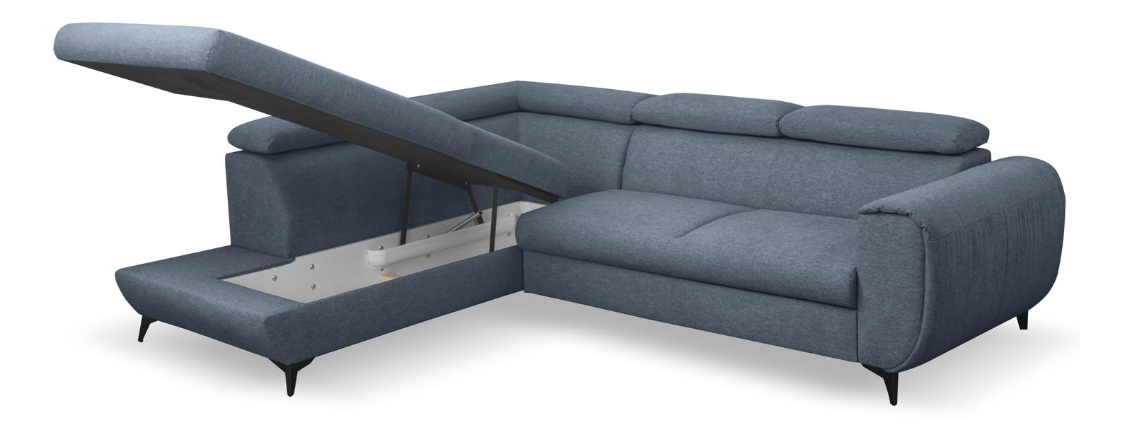 ZobrazitRohová sedací souprava je vyrobena z kvalitních materiálů, jako jsou dřevo, dřevotříska a překližka, což zajišťuje pevnost a dlouhou životnost. Sedák je tvořen PUR pěnou a pružinami, které poskytují vynikající komfort při sezení. Tato souprava je rozkládací a nabízí plochu na spaní o rozměrech 128 x 195 cm, ideální pro hosty nebo příležitostné přespání. Výška sezení je 41 cm, hloubka sezení 62 cm a výška područky je 62 cm, což zaručuje pohodlné a ergonomické sezení. Souprava disponuje úložným prostorem, který poskytuje dostatek místa pro uložení ložního prádla nebo jiných věcí. Hřbet je potažen stejnou látkou, což dodává sedací soupravě jednotný a elegantní vzhled. Nastavitelné opěrky hlavy přispívají k ještě většímu komfortu. Nožičky jsou kovové o výšce 10 cm, což zaručuje stabilitu a moderní vzhled. Typ rozkládání je vozík, což umožňuje snadné a rychlé rozkládání sedačky.