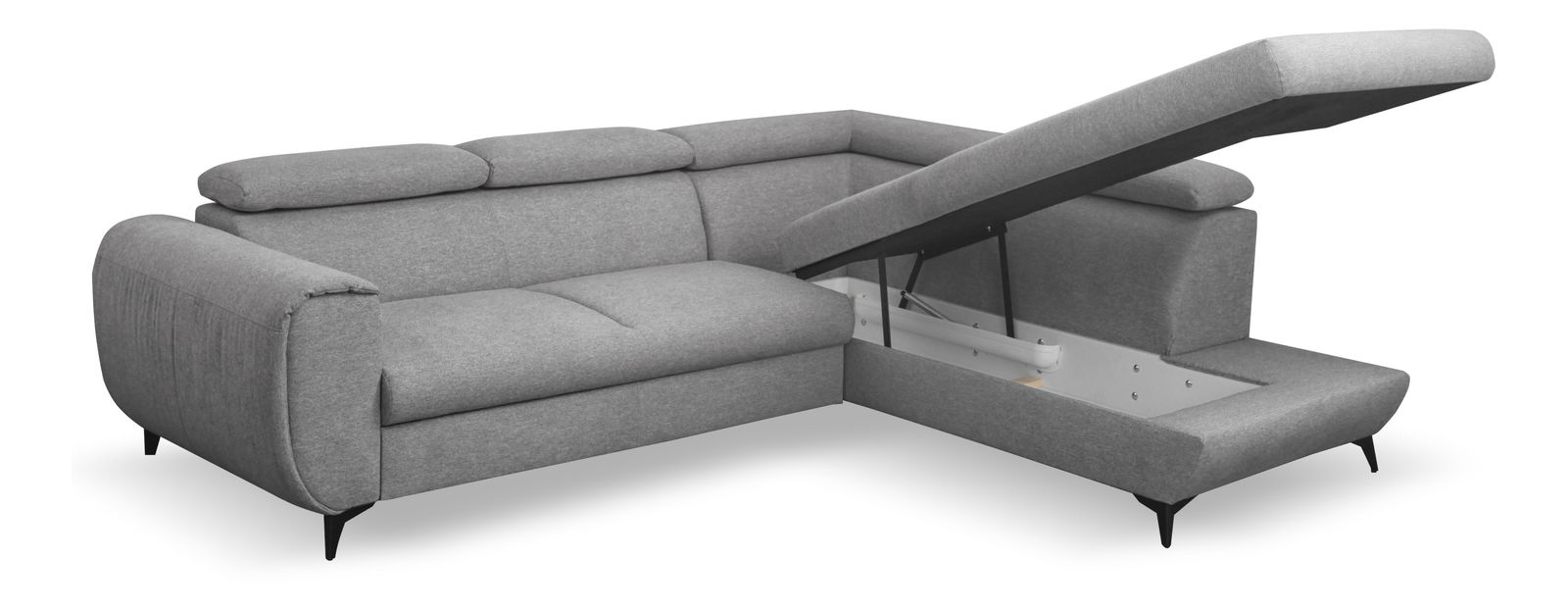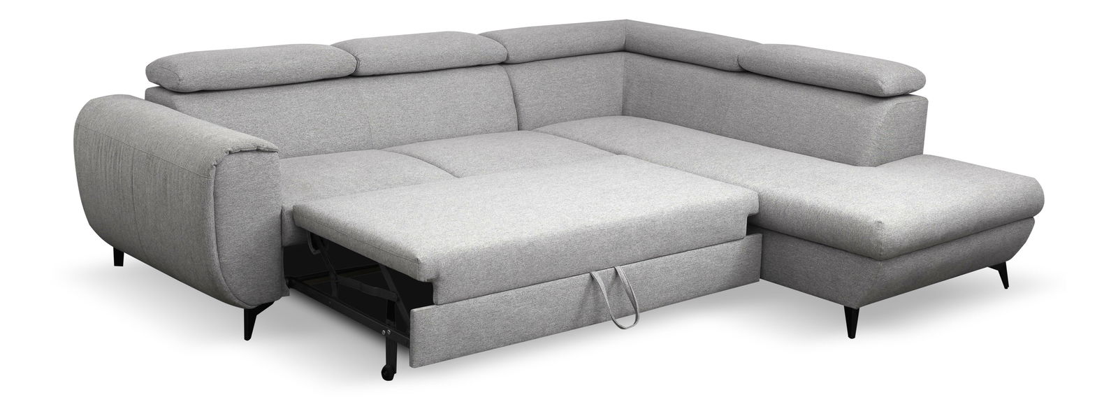 ZobrazitRohová sedací souprava je vyrobena z kvalitních materiálů, jako jsou dřevo, dřevotříska a překližka, což zajišťuje pevnost a dlouhou životnost. Sedák je tvořen PUR pěnou a pružinami, které poskytují vynikající komfort při sezení. Tato souprava je rozkládací a nabízí plochu na spaní o rozměrech 128 x 195 cm, ideální pro hosty nebo příležitostné přespání. Výška sezení je 41 cm, hloubka sezení 62 cm a výška područky je 62 cm, což zaručuje pohodlné a ergonomické sezení. Souprava disponuje úložným prostorem, který poskytuje dostatek místa pro uložení ložního prádla nebo jiných věcí. Hřbet je potažen stejnou látkou, což dodává sedací soupravě jednotný a elegantní vzhled. Nastavitelné opěrky hlavy přispívají k ještě většímu komfortu. Nožičky jsou kovové o výšce 10 cm, což zaručuje stabilitu a moderní vzhled. Typ rozkládání je vozík, což umožňuje snadné a rychlé rozkládání sedačky.
