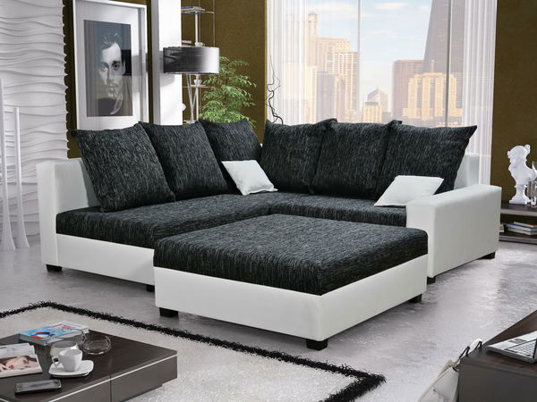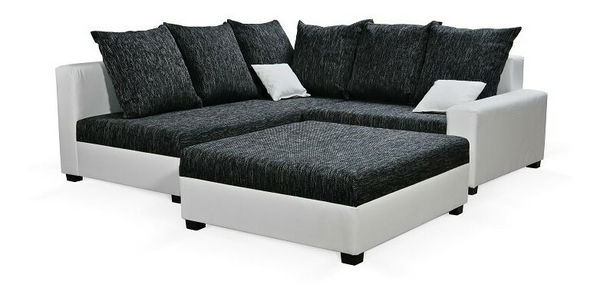 Rohová sedací souprava Monarda (černá + bílá) (s taburetem) (L)