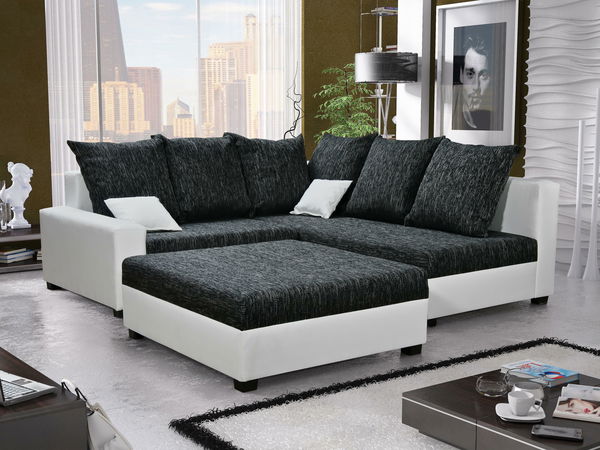 Rohová sedací souprava Monarda (černá + bílá) (s taburetem) (P)