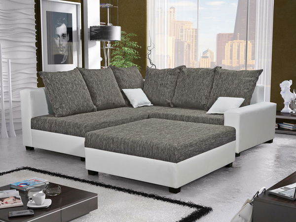 Rohová sedací souprava Monarda (šedá + bílá) (s taburetem) (L)