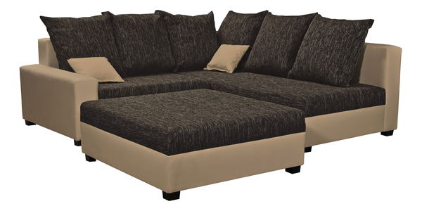Rohová sedací souprava Monarda (tmavě hnědá + béžová) (s taburetem) (P)