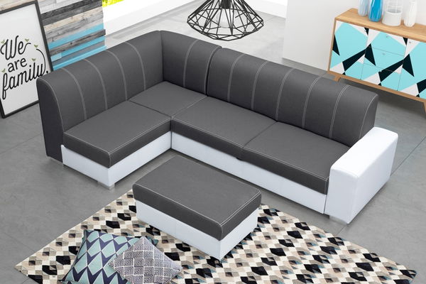 Rohová sedací souprava Monique (tmavě šedá + bílá) (L)