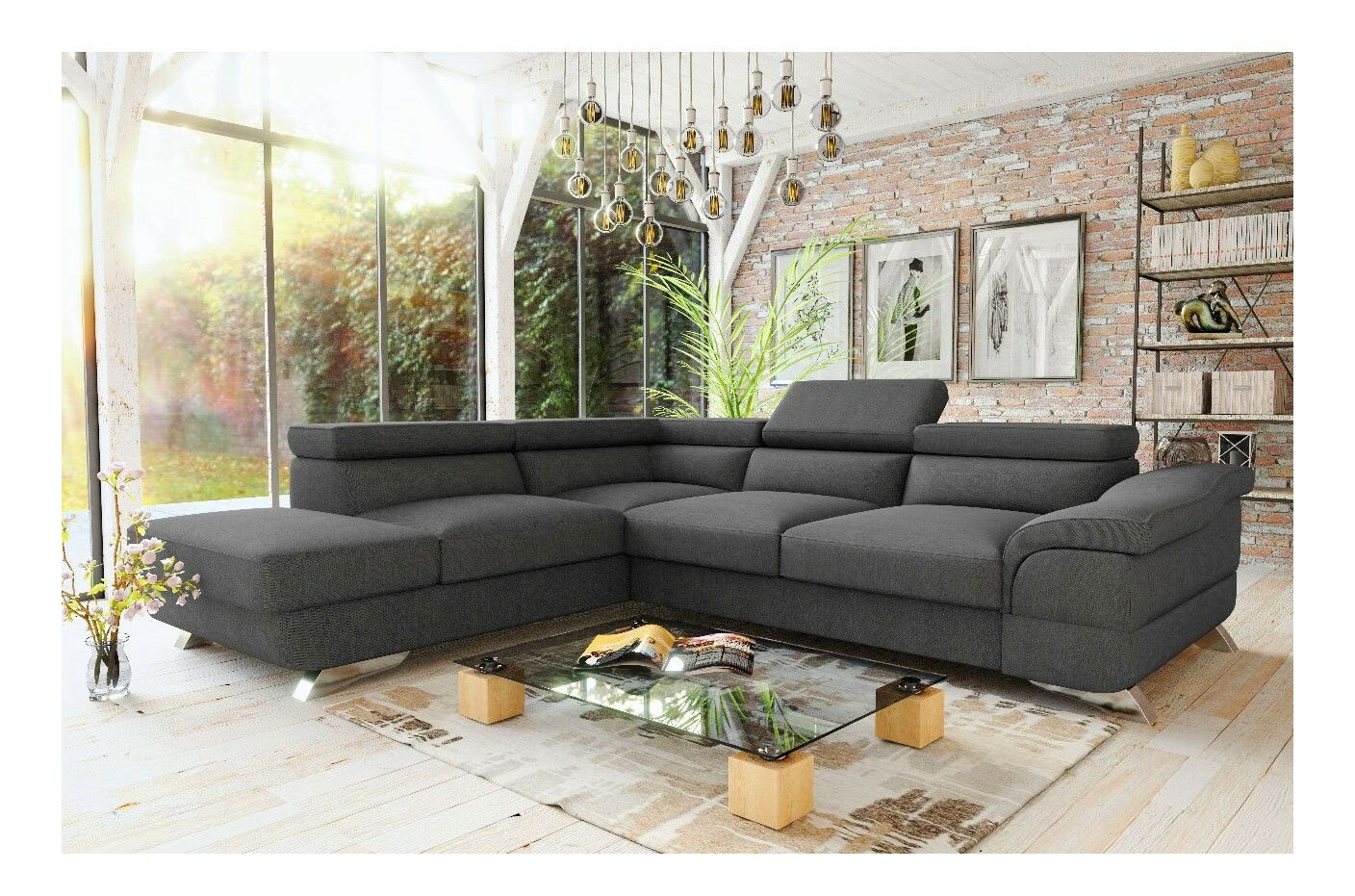 ZobrazitRozkládací rohová sedací souprava Monroe je příkladem modernistického nábytku do obývacího pokoje, který má spoustu praktických a automatických funkcí. Nastavitelné opěrky hlavy, úložný prostor na ložní prádlo a funkce rozkladu ji dělají velmi příjemnou. Zadní část sedačky je čalouněna látkou, čili ji můžete umístit kdekoli v místnosti. Základem celé konstrukce je stabilní dřevěný rám.