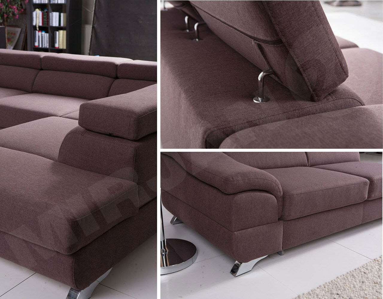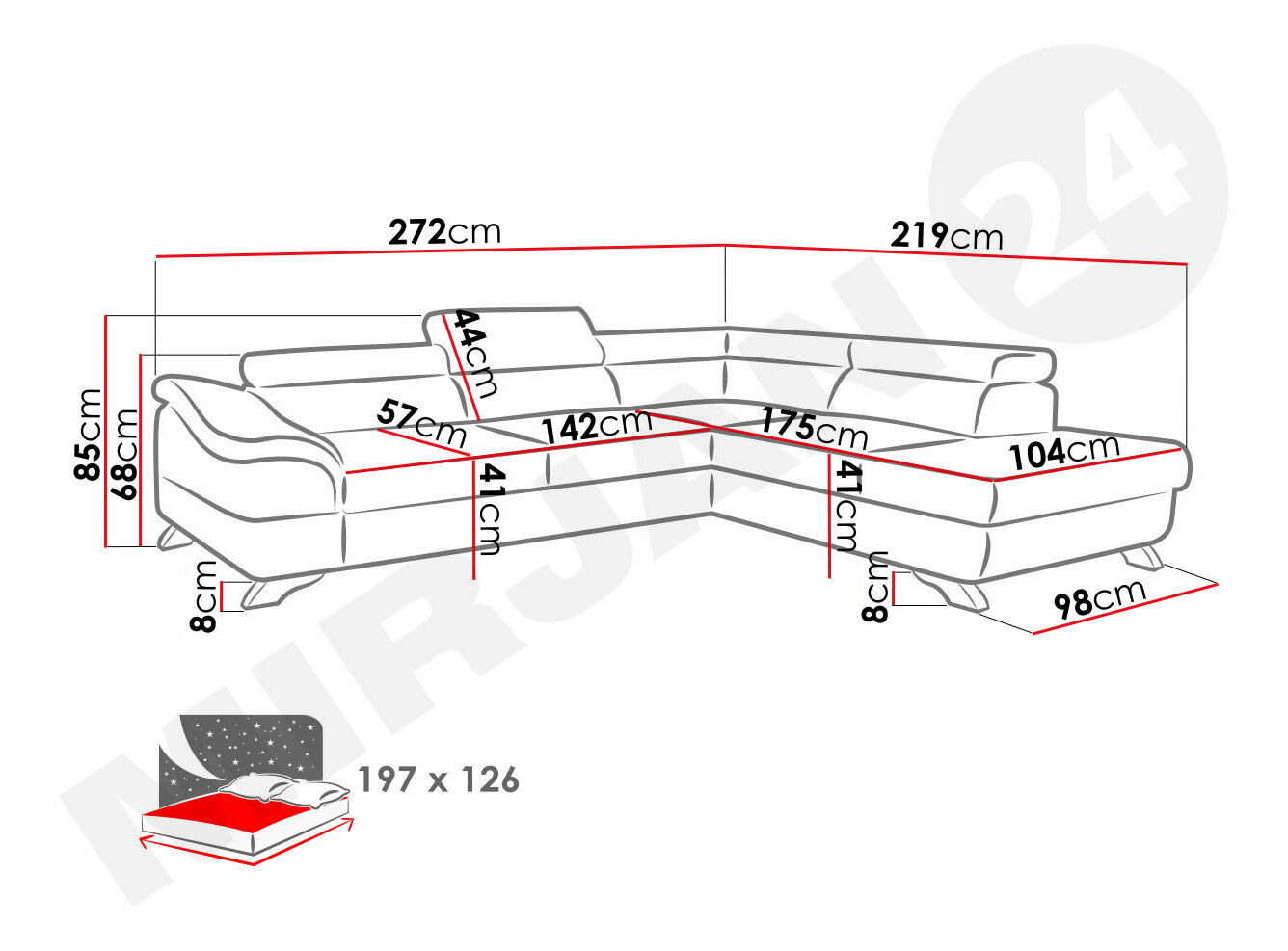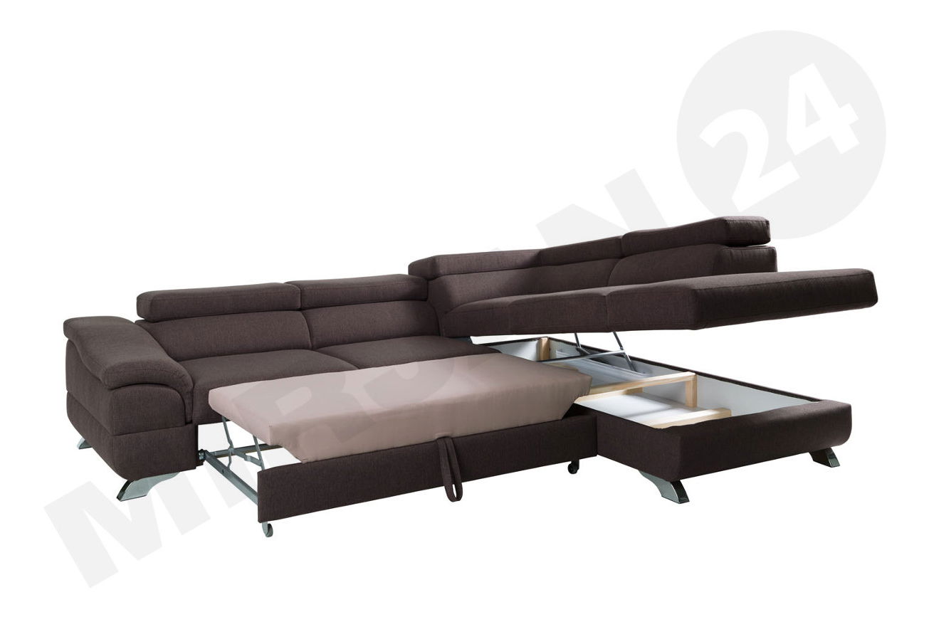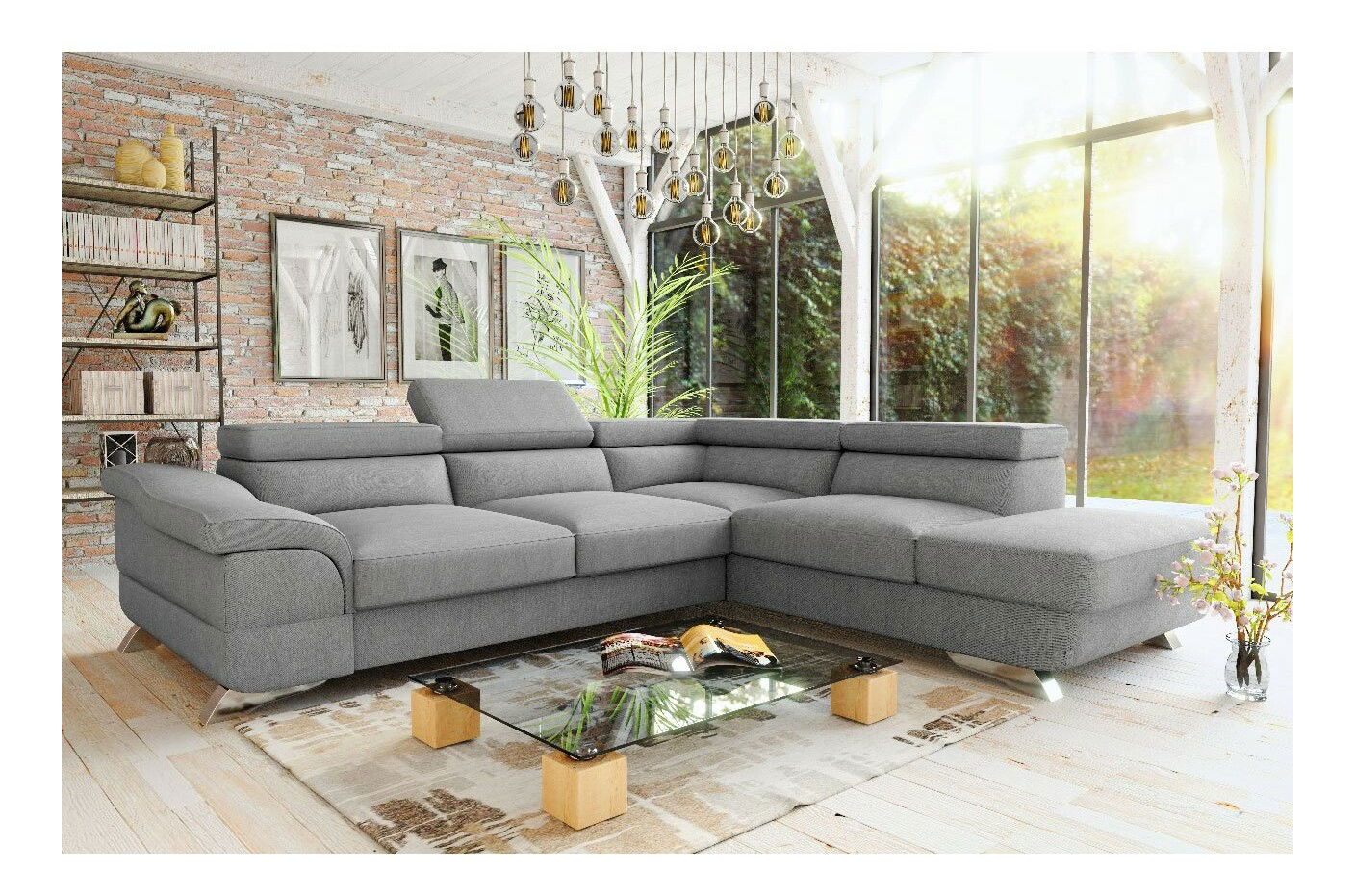ZobrazitRozkládací rohová sedací souprava Monroe je příkladem modernistického nábytku do obývacího pokoje, který má spoustu praktických a automatických funkcí. Nastavitelné opěrky hlavy, úložný prostor na ložní prádlo a funkce rozkladu ji dělají velmi příjemnou. Zadní část sedačky je čalouněna látkou, čili ji můžete umístit kdekoli v místnosti. Základem celé konstrukce je stabilní dřevěný rám.