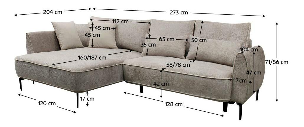 Rohová sedací souprava Montenegro (sivobéžová) (L)
