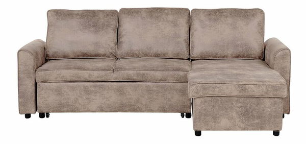 Vytvořte si dokonale útulný prostor v obývacím pokoji, kde budete trávit příjemné večery. Pohovka má praktický úložný prostor na ložní prádlo a lze je rozložit na postel pro dvě osoby. Lehátko je umístěno na levé straně z pohledu sedící osoby. Silně vyztužená sedadla a opěradla jsou čalouněna odolnou umělou kůží v hnědé barvě a poskytují nejvyšší úroveň pohodlí. Design pohovky na kovových nohách doplní širokou škálu stylů interiérového zařízení.