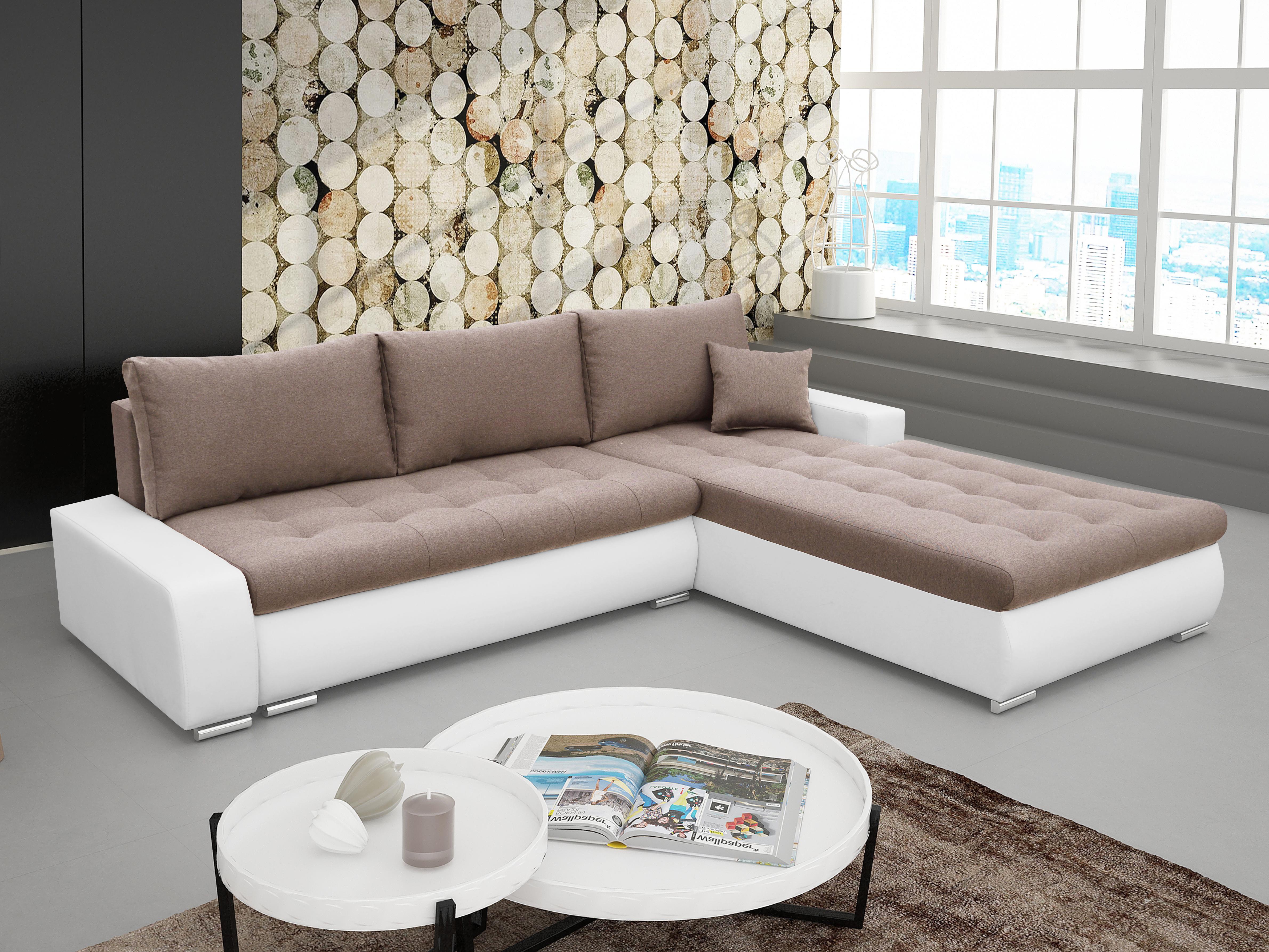 Rohová sedací souprava Nemisa (hnědá + bílá) (P)