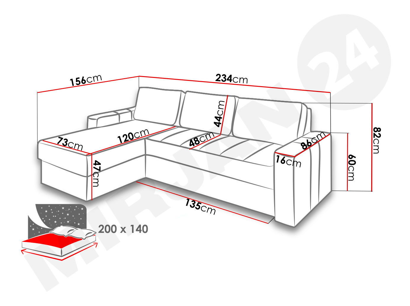 Rohová sedací souprava je ideální volbou pro ty, kteří hledají pohodlí a styl. Jednoduchá a funkční rohová sedačka Nado je vybavena pohodlnou funkcí spaní a úložným prostorem. Je ideální jako místo pro příležitostný odpočinek i pro každodenní spaní. Má opěradlo v podobě polštářů, které si můžete kdykoli nastavit podle potřeby. Rohová pohovka byla vyrobena s důrazem i na ten nejmenší detail, díky čemuž je spokojenost s jejím používáním na nejvyšší úrovni. Rozměry: délka: 234 cm šířka: 156 cm výška: 82 cm plocha na spaní: 200x140 Dostupné potahy: možnost výběru zde Výběr strany: levá nebo pravá Provedení: dřevěný rám + dřevotřísková deska, polyuretanová pěna vlnité pružiny funkce rozložení, s úložným polštářů v ceně jsou zahrnuty polštáře Záruční doba: 24 měsíců