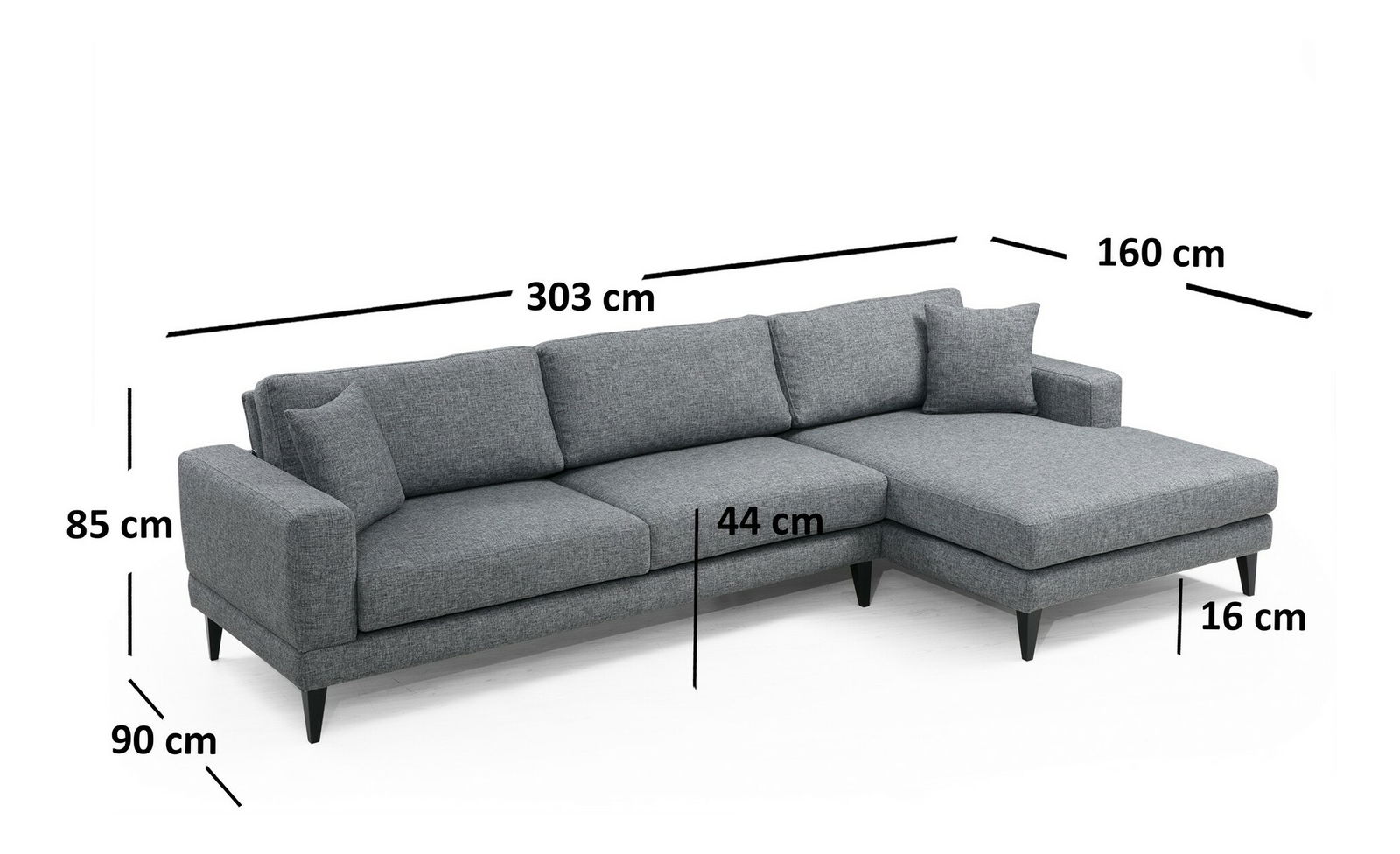 délka: 303 cm x 160 cm šířka: 90 cm výška: 85 cm