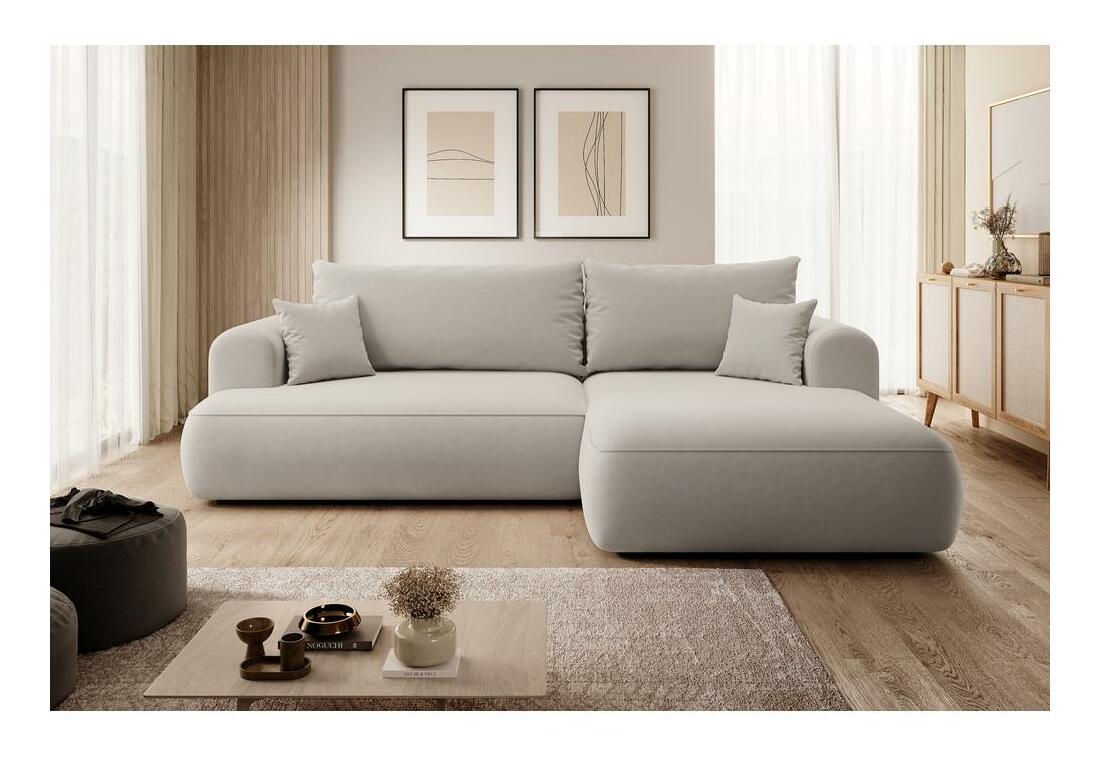 Chcete vytvořit módní relaxační prostor, kde se moderní trendy setkávají s pohodlím? Potom naše rohová sedačka jistě splní všechna vaše očekávání! Rohová pohovka s funkcí spánku je nabídka vytvořená speciálně i pro ty nejnáročnější uživatele! Nábytek je vybaven sedadlem vyplněným pružinami Bonnell a pružnou polyuretanovou pěnou, které spolu s opěradlem plným polyuretanové pěny a silikonových granulí jemně obejme tělo uživatele a správně podpírá citlivé body páteře. Takto ani pár hodin strávených sledováním oblíbeného seriálu nebo odpoledním rozhrem s kamarádkou neskončí dotěrnou bolestí. Rohová pohovka má funkci na spaní se snadno ovladatelným systémem DL, který umožňuje rychlou přeměnu z pohodlné postele s velkou plochou i prostorným lůžkovým oddělením, kde si můžete uložit potřebné textilie. Detaily produktu: pravý roh, hustota pěny: T35, způsob rozkládání DL, roh je čalouněný strukturní tkaninou Castel 03 ve světle béžové barvě, Castel je měkká, hladká tkanina vyznačující se vysokou odolností proti tření, oděru a žmolkování, díky čemuž je ideální pro nábytek pro každodenní použití. Další výhodou je Easy Clean Technology – materiál se snadno čistí, což umožňuje snadné odstranění nečistot s trochou vody a měkkým hadříkem.