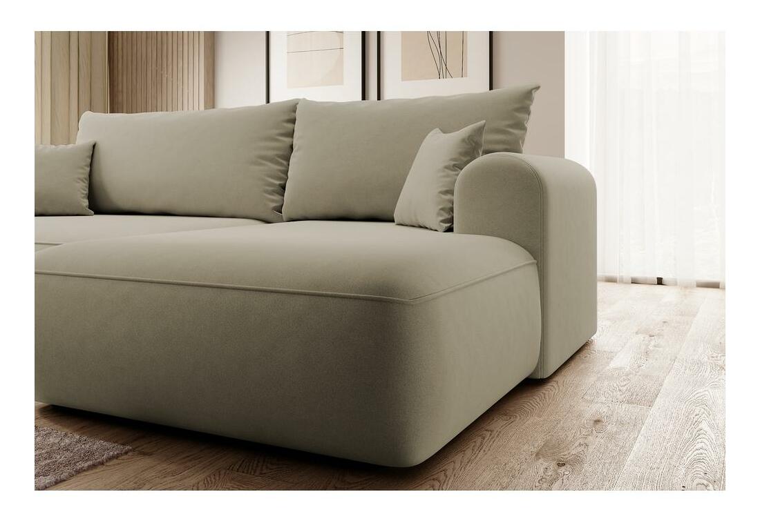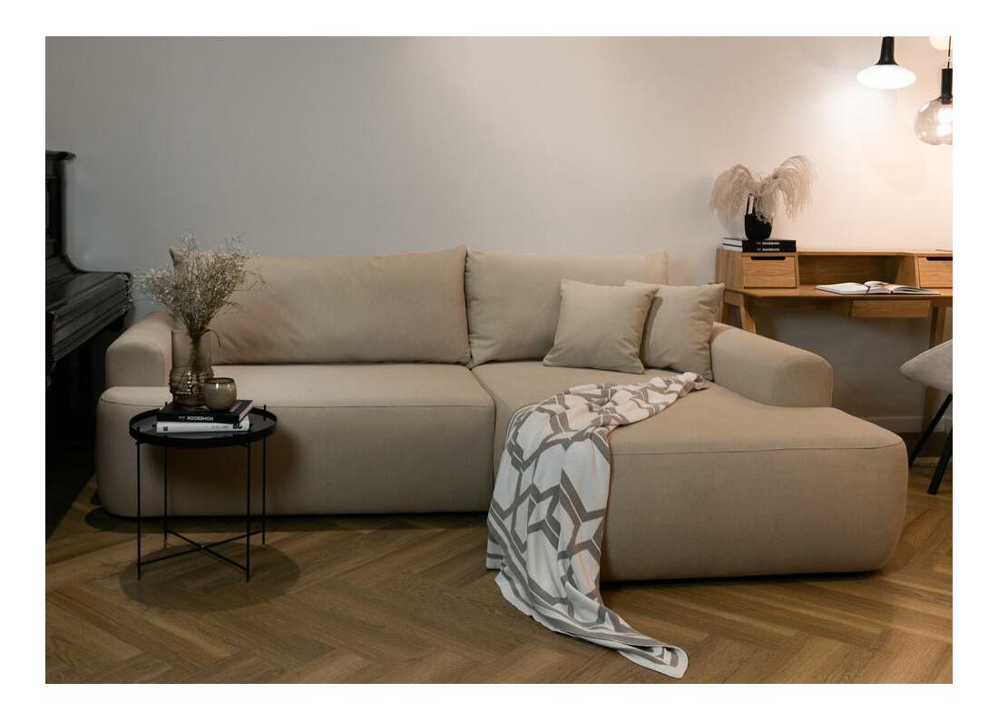 ZobrazitChcete vytvořit módní relaxační prostor, kde se moderní trendy setkávají s pohodlím? Potom naše rohová sedačka jistě splní všechna vaše očekávání! Rohová pohovka s funkcí spánku je nabídka vytvořená speciálně i pro ty nejnáročnější uživatele! Nábytek je vybaven sedadlem vyplněným pružinami Bonnell a pružnou polyuretanovou pěnou, které spolu s opěradlem plným polyuretanové pěny a silikonových granulí jemně obejme tělo uživatele a správně podpírá citlivé body páteře. Takto ani pár hodin strávených sledováním oblíbeného seriálu nebo odpoledním rozhrem s kamarádkou neskončí dotěrnou bolestí. Rohová pohovka má funkci na spaní se snadno ovladatelným systémem DL, který umožňuje rychlou přeměnu z pohodlné postele s velkou plochou i prostorným lůžkovým oddělením, kde si můžete uložit potřebné textilie. Detaily produktu: pravý roh, hustota pěny: T35, způsob rozkládání DL, roh je čalouněný strukturní tkaninou Castel 15 v béžové barvě, Castel je měkká, hladká tkanina vyznačující se vysokou odolností proti tření, oděru a žmolkování, díky čemuž je perfektní pro každodenní používání nábytku. Další výhodou je Easy Clean Technology – materiál se snadno čistí, což umožňuje snadné odstranění nečistot s trochou vody a měkkým hadříkem.