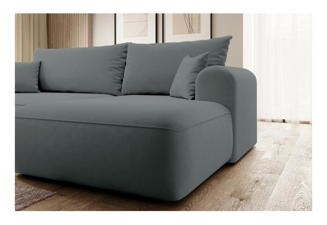 ZobrazitChcete vytvořit módní relaxační prostor, kde se moderní trendy setkávají s pohodlím? Potom naše rohová sedačka jistě splní všechna vaše očekávání! Rohová pohovka s funkcí spánku je nabídka vytvořená speciálně i pro ty nejnáročnější uživatele! Nábytek je vybaven sedadlem vyplněným pružinami Bonnell a pružnou polyuretanovou pěnou, které spolu s opěradlem plným polyuretanové pěny a silikonových granulí jemně obejme tělo uživatele a správně podpírá citlivé body páteře. Takto ani pár hodin strávených sledováním oblíbeného seriálu nebo odpoledním rozhrem s kamarádkou neskončí dotěrnou bolestí. Rohová pohovka má funkci na spaní se snadno ovladatelným systémem DL, který umožňuje rychlou přeměnu z pohodlné postele s velkou plochou i prostorným lůžkovým oddělením, kde si můžete uložit potřebné textilie. Detaily produktu: pravý roh, hustota pěny: T35, způsob rozkládání DL, roh je čalouněný konstrukční tkaninou Castel 93 v tmavě šedé barvě, Castel je měkká, hladká tkanina vyznačující se vysokou odolností proti tření, oděru a žmolkování, díky čemuž je ideální pro nábytek na každodenní použití. Další výhodou je Easy Clean Technology – materiál se snadno čistí, což umožňuje snadné odstranění nečistot s trochou vody a měkkým hadříkem.