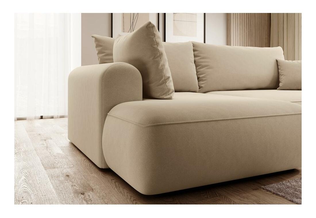 ZobrazitChcete vytvořit módní relaxační prostor, kde se moderní trendy setkávají s pohodlím? Potom naše rohová sedací souprava jistě splní všechna vaše očekávání Rohová sedací souprava ve tvaru L je kusem nábytku, který dokonale zapadá do současných trendů interiérového designu. Díky jednoduché struktuře a zaobleným tvarům se perfektně hodí do většiny aranžmá a svým vzhledem a pohodlím potěší vaše přátele a blízké. Díky tomu, že v sedadle jsou pružiny Bonnell a v opěradle vlnová pružina, je tento kus nábytku mimořádně pohodlný a určitě se vám z něj nebude chtít vstát. se navíc díky funkci DL skládání lze snadno přeměnit na pohodlnou postel, ve které snadno přespíte přes noc své blízké. Veškerý textil můžete uložit do kontejneru na ložní prádlo, který je standardem pro rohovou sedačku Pokud se vám líbí design rohové sedačky, určitě si prohlédněte i další nábytek z této kolekce: Rohová sedačka ve tvaru L, levostranný nábytek, volně stojící model, tj.; čalouněným opěradlem, funkce spánku typu DL umožňuje velmi rychlé rozložení rohové sedačky, standardně kontejner na lůžkoviny, hustota pěny: T30/T37, černé nohy, nábytek čalouněný Castel 15 látka v béžové barvě Castel je měkká, hladká látka vyznačující se vysokou odolností vůči tření, oděru a žmolkování, díky čemuž je ideální pro každodenní nábytek. Další výhodou je Easy Clean Technology – materiál se snadno čistí, což umožňuje snadné odstranění nečistot s trochou vody a měkkým hadříkem.