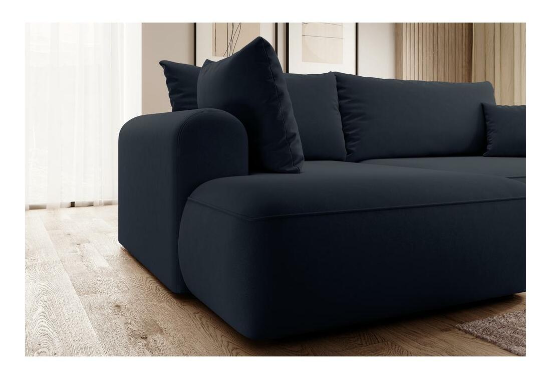 ZobrazitChcete vytvořit módní relaxační prostor, kde se moderní trendy setkávají s pohodlím? Potom naše rohová sedací souprava jistě splní všechna vaše očekávání Rohová sedací souprava ve tvaru L je kusem nábytku, který dokonale zapadá do současných trendů interiérového designu. Díky jednoduché struktuře a zaobleným tvarům se perfektně hodí do většiny aranžmá a svým vzhledem a pohodlím potěší vaše přátele a blízké. Díky tomu, že v sedadle jsou pružiny Bonnell a v opěradle vlnová pružina, je tento kus nábytku mimořádně pohodlný a určitě se vám z něj nebude chtít vstát. se navíc díky funkci DL skládání lze snadno přeměnit na pohodlnou postel, ve které snadno přespíte přes noc své blízké. Veškerý textil můžete uložit do kontejneru na ložní prádlo, který je standardem pro rohovou sedačku Pokud se vám líbí design rohové sedačky, určitě si prohlédněte i další nábytek z této kolekce: Rohová sedačka ve tvaru L, levostranný nábytek, volně stojící model, tj.; čalouněným opěradlem, funkce spánku typu DL umožňuje velmi rychlé rozložení rohové sedačky, standardně kontejner na lůžkoviny, hustota pěny: T30/T37, černé nohy, nábytek čalouněný Castel Látka 79 v námořnické modré, Castel je měkká, hladká látka vyznačující se vysokou odolností proti tření , oděru a žmolkování, díky čemuž je ideální pro každodenní nábytek. Další výhodou je Easy Clean Technology – materiál se snadno čistí, což umožňuje snadné odstranění nečistot s trochou vody a měkkým hadříkem.