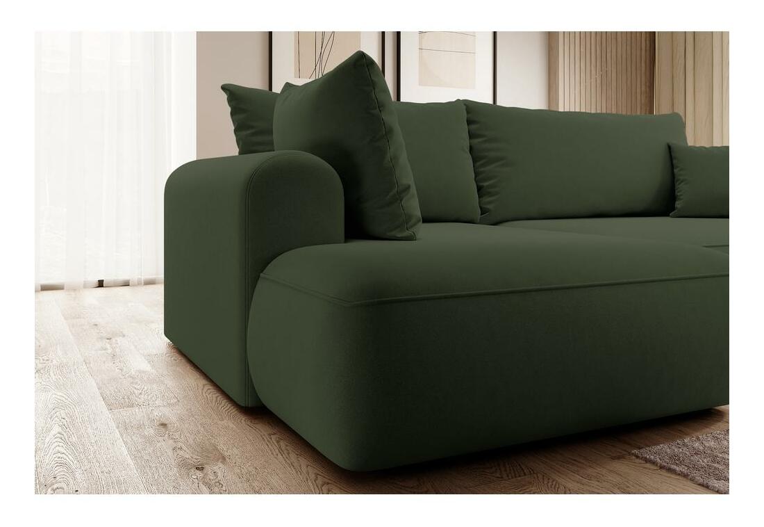ZobrazitChcete vytvořit módní relaxační prostor, kde se moderní trendy setkávají s pohodlím? Potom naše rohová sedací souprava jistě splní všechna vaše očekávání Rohová sedací souprava ve tvaru L je kusem nábytku, který dokonale zapadá do současných trendů interiérového designu. Díky jednoduché struktuře a zaobleným tvarům se perfektně hodí do většiny aranžmá a svým vzhledem a pohodlím potěší vaše přátele a blízké. Díky tomu, že v sedadle jsou pružiny Bonnell a v opěradle vlnová pružina, je tento kus nábytku mimořádně pohodlný a určitě se vám z něj nebude chtít vstát. se navíc díky funkci DL skládání lze snadno přeměnit na pohodlnou postel, ve které snadno přespíte přes noc své blízké. Veškerý textil můžete uložit do kontejneru na ložní prádlo, který je standardem pro rohovou sedačku Pokud se vám líbí design rohové sedačky, určitě si prohlédněte i další nábytek z této kolekce: Rohová sedačka ve tvaru L, levostranný nábytek, volně stojící model, tj.; čalouněným opěradlem, funkce spánku typu DL umožňuje velmi rychlé rozložení rohové sedačky, standardně kontejner na lůžkoviny, hustota pěny: T30/T37, černé nohy, nábytek čalouněný Castel 39 látka v olivové barvě, Castel je měkká, hladká látka vyznačující se vysokou odolností proti tření , oděru a žmolkování, díky čemuž je ideální pro každodenní nábytek. Další výhodou je Easy Clean Technology – materiál se snadno čistí, což umožňuje snadné odstranění nečistot s trochou vody a měkkým hadříkem.