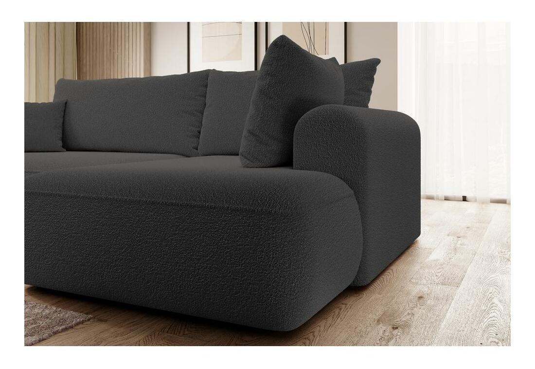 ZobrazitChcete vytvořit módní relaxační prostor, kde se moderní trendy setkávají s pohodlím? Potom naše rohová sedací souprava jistě splní všechna vaše očekávání Rohová sedací souprava ve tvaru L je kusem nábytku, který dokonale zapadá do současných trendů interiérového designu. Díky jednoduché struktuře a zaobleným tvarům se perfektně hodí do většiny aranžmá a svým vzhledem a pohodlím potěší vaše přátele a blízké. Díky tomu, že v sedadle jsou pružiny Bonnell a v opěradle vlnová pružina, je tento kus nábytku mimořádně pohodlný a určitě se vám z něj nebude chtít vstát. se navíc díky funkci DL skládání lze snadno přeměnit na pohodlnou postel, ve které snadno přespíte přes noc své blízké. Veškerý textil můžete uložit do kontejneru na ložní prádlo, který je standardem pro rohovou sedačku Pokud se vám líbí design rohové sedačky, určitě si prohlédněte i další nábytek z této kolekce: Rohová sedačka ve tvaru L, pravý nábytek, volně stojící model, tj.; čalouněným opěradlem, funkce spánku typu DL umožňuje velmi rychlé rozložení rohové sedačky, standardně kontejner na lůžkoviny, hustota pěny: T30/T37, černé nohy, nábytek čalouněný Abriamo 08 látka v tmavě šedé barvě, Abriamo je měkká, na dotek příjemná látka. Tento materiál má velmi pevnou a kroucenou vazbu. Abriamo je odolné vůči tření, oděru a odlupování.