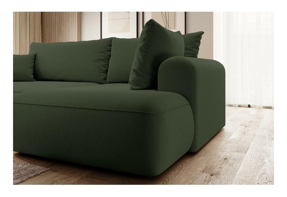 ZobrazitChcete vytvořit módní relaxační prostor, kde se moderní trendy setkávají s pohodlím? Potom naše rohová sedací souprava jistě splní všechna vaše očekávání Rohová sedací souprava ve tvaru L je kusem nábytku, který dokonale zapadá do současných trendů interiérového designu. Díky jednoduché struktuře a zaobleným tvarům se perfektně hodí do většiny aranžmá a svým vzhledem a pohodlím potěší vaše přátele a blízké. Díky tomu, že v sedadle jsou pružiny Bonnell a v opěradle vlnová pružina, je tento kus nábytku mimořádně pohodlný a určitě se vám z něj nebude chtít vstát. se navíc díky funkci DL skládání lze snadno přeměnit na pohodlnou postel, ve které snadno přespíte přes noc své blízké. Veškerý textil můžete uložit do kontejneru na ložní prádlo, který je standardem pro rohovou sedačku Pokud se vám líbí design rohové sedačky, určitě si prohlédněte i další nábytek z této kolekce: Rohová sedačka ve tvaru L, pravý nábytek, volně stojící model, tj.; čalouněným opěradlem, funkce spánku typu DL umožňuje velmi rychlé rozložení rohové sedačky, standardně kontejner na lůžkoviny, hustota pěny: T30/T37, černé nohy, nábytek čalouněný Castel 39 látka v olivové barvě, Castel je měkká, hladká látka vyznačující se vysokou odolností proti tření , oděru a žmolkování, díky čemuž je ideální pro každodenní nábytek. Další výhodou je Easy Clean Technology – materiál se snadno čistí, což umožňuje snadné odstranění nečistot s trochou vody a měkkým hadříkem.
