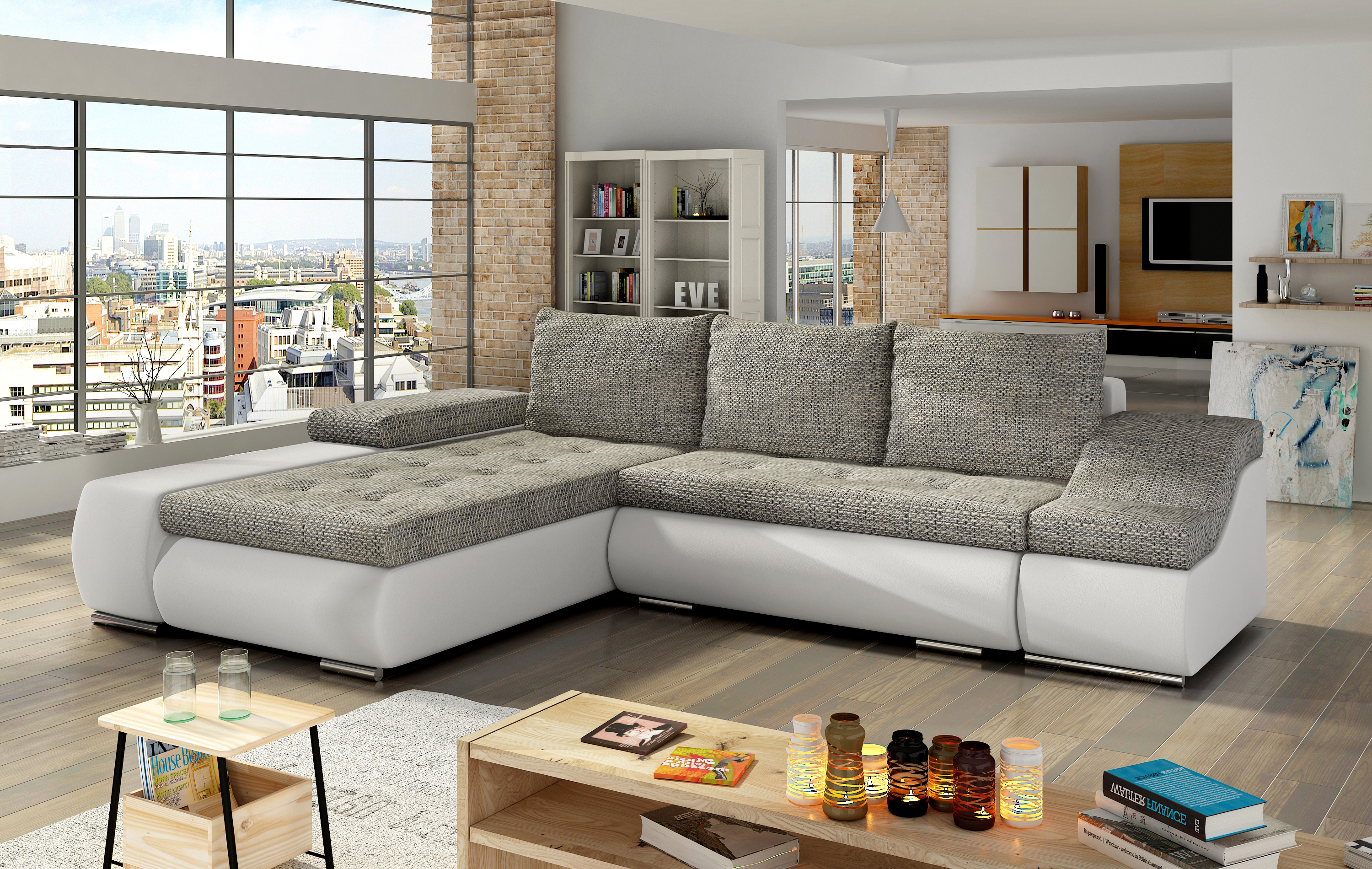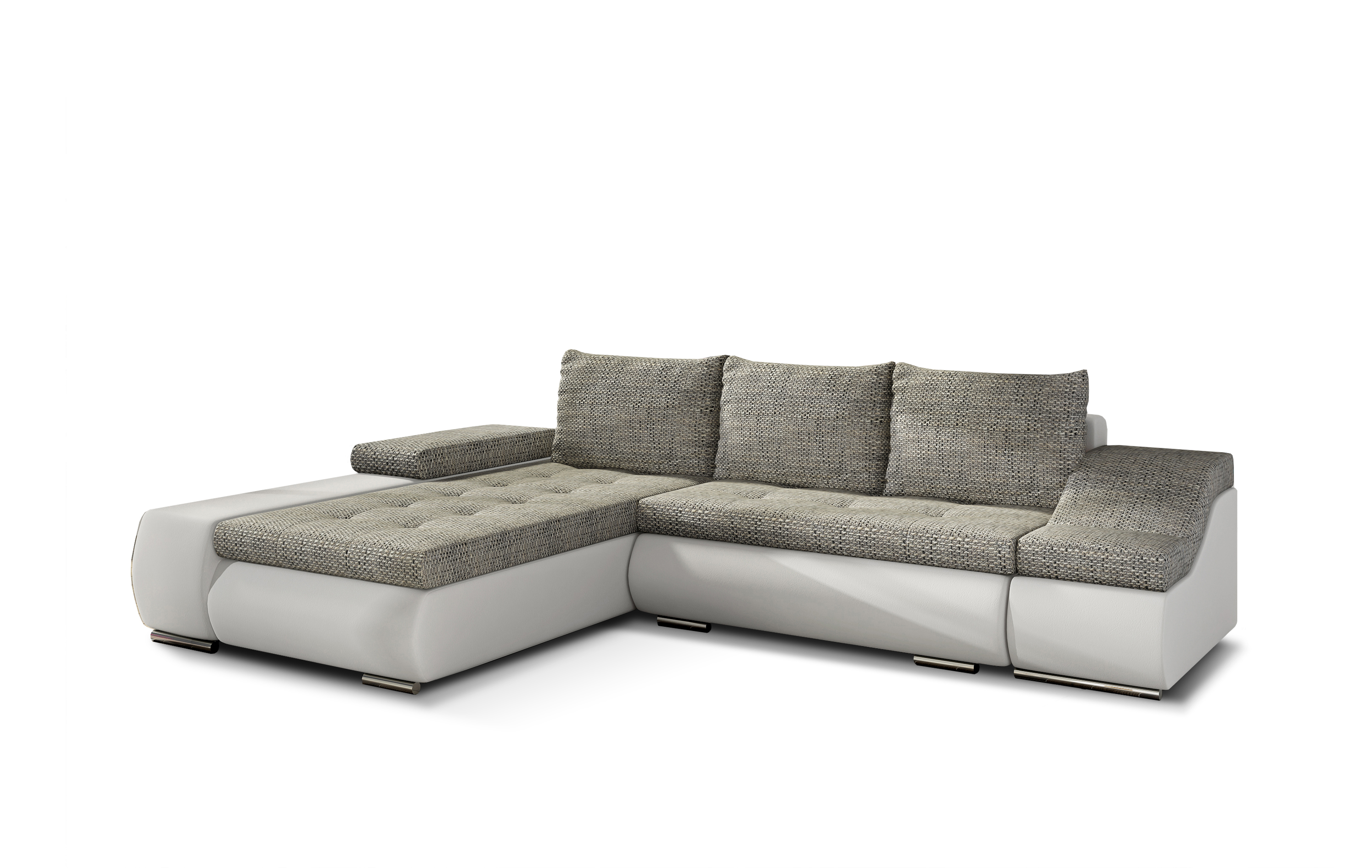 Rohová pohovka Ontario. Fascinuje vás minimalismus a loftový styl a zařizujete si obývák? Skvělé! Tak tato rohová pohovka je vaše nejlepší volba. Rohová pohovka Ontario kombinuje výjimečné pohodlí s elegancí obohacené o jedinečné dekorativní prvky. Jedna strana loketní opěrky je rozšířená, druhá je kratší, lze ji použít jako další sedadlo. Zaoblené hrany nábytku, stylové ozdobné nožičky, velké polštáře a mimořádně jemné prošívání - to vše přispívá k celkovému efektu, který potěší fanoušky moderního nábytku. Pohovka Ontario má dvoubarevný čalouněný materiál nejvyšší kvality, odolný vůči nečistotám, odřeninám a vyblednutiu.Tento model je možné libovolně upravovat výběrem sladěných nebo kontrastních barev materiálu, poskytuje tak možnost úplného přizpůsobení nábytku vašim preferencím a stylu převládajícímu v bytě. Tento model má rozměry 296x200x88cm, poskytuje tak mnoho prostoru na odpočinek během dne i noci. Výsuvná spodní část rohu a převrácené opěradlo umožňují rychlé přizpůsobení nábytku vašim potřebám. Pevná struktura, použité materiály ale i výplň sedadel z vlnité pružiny a pěny T30 zaručují ten nejvyšší komfort. Navíc má úložný prostor pro lůžkoviny. Pohovka Ontario - všestranný kus nábytku do obývacího pokoje.