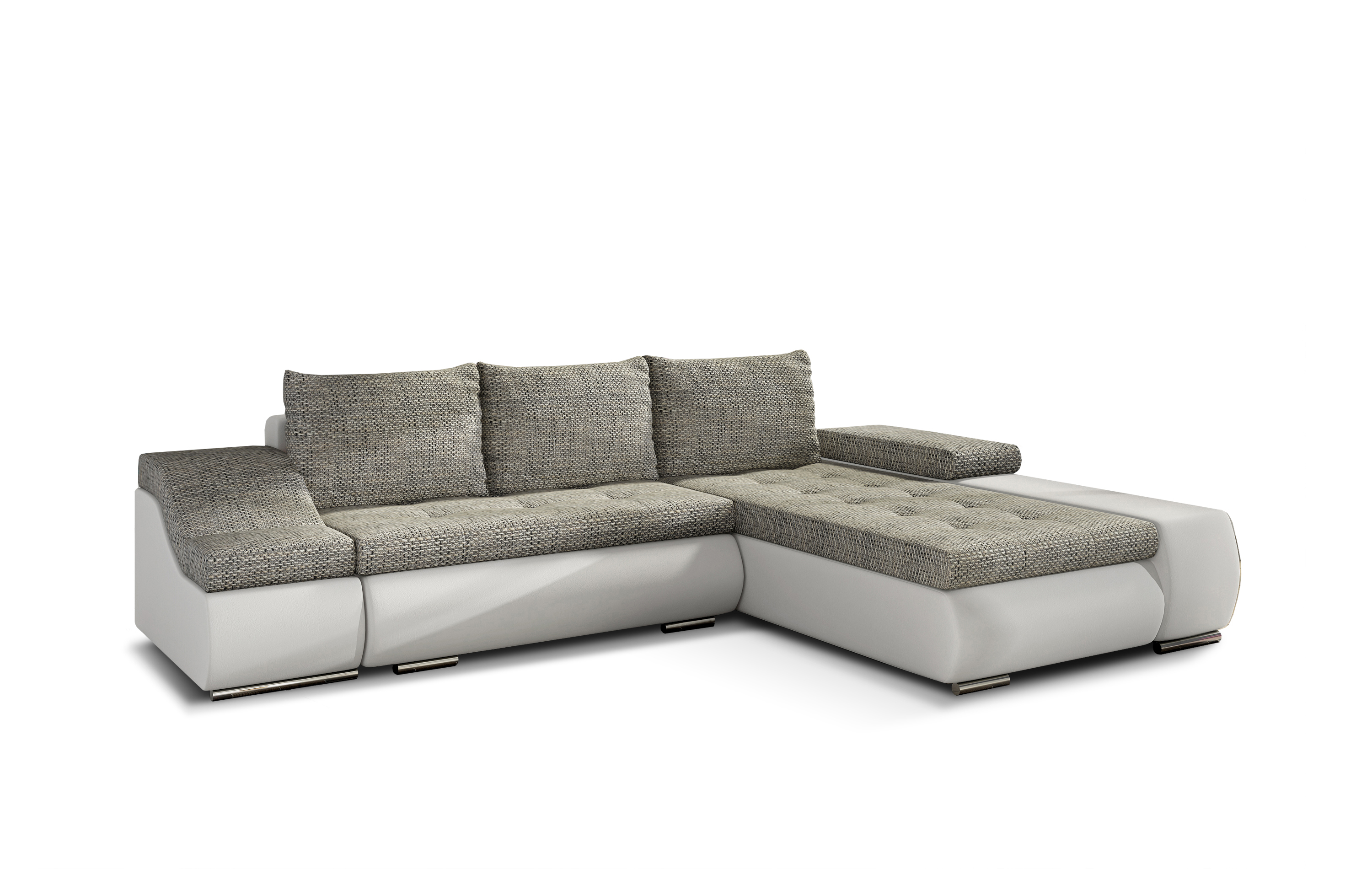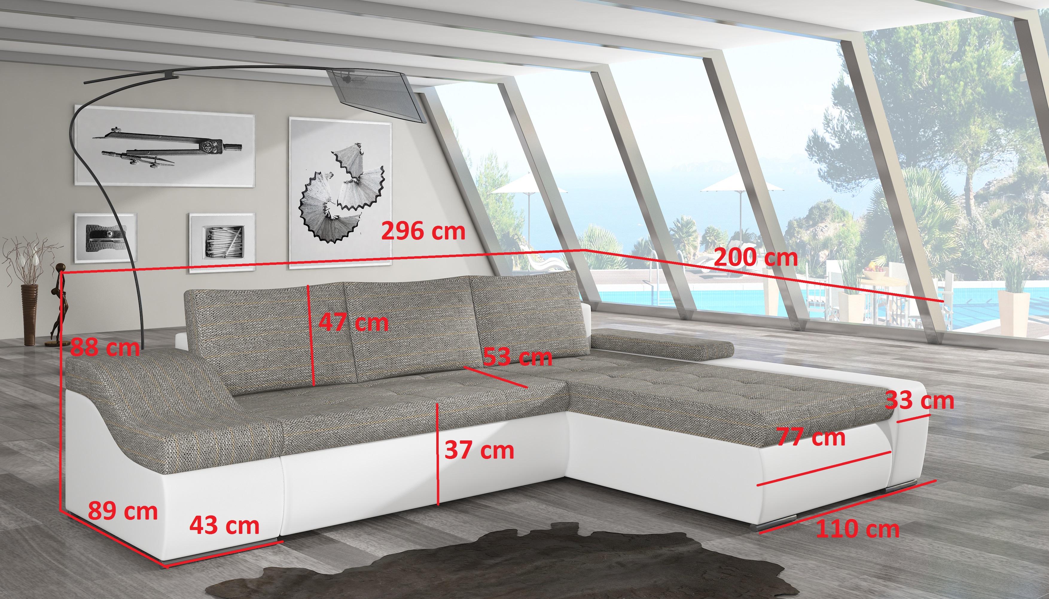 Rohová pohovka Ontario. Fascinuje vás minimalismus a loftový styl a zařizujete si obývák? Skvělé! Tak tato rohová pohovka je vaše nejlepší volba. Rohová pohovka Ontario kombinuje výjimečné pohodlí s elegancí obohacené o jedinečné dekorativní prvky. Jedna strana loketní opěrky je rozšířená, druhá je kratší, lze ji použít jako další sedadlo. Zaoblené hrany nábytku, stylové ozdobné nožičky, velké polštáře a mimořádně jemné prošívání - to vše přispívá k celkovému efektu, který potěší fanoušky moderního nábytku. Pohovka Ontario má dvoubarevný čalouněný materiál nejvyšší kvality, odolný vůči nečistotám, odřeninám a vyblednutiu.Tento model je možné libovolně upravovat výběrem sladěných nebo kontrastních barev materiálu, poskytuje tak možnost úplného přizpůsobení nábytku vašim preferencím a stylu převládajícímu v bytě. Tento model má rozměry 296x200x88cm, poskytuje tak mnoho prostoru na odpočinek během dne i noci. Výsuvná spodní část rohu a převrácené opěradlo umožňují rychlé přizpůsobení nábytku vašim potřebám. Pevná struktura, použité materiály ale i výplň sedadel z vlnité pružiny a pěny T30 zaručují ten nejvyšší komfort. Navíc má úložný prostor pro lůžkoviny. Pohovka Ontario - všestranný kus nábytku do obývacího pokoje.