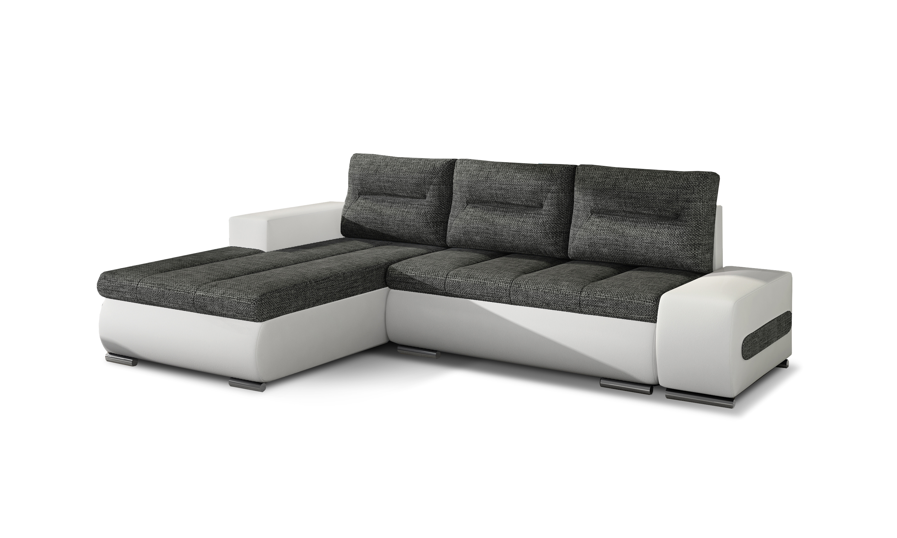 Rohová rozkládací pohovka Ottavio. Sníte o obývacím pokoji v industriální atmosféře? Pak vsaďte na rohovou pohovku Ottavio v minimalistické atmosféře. Tato rohová pohovka kombinuje jednoduchost a eleganci, klasický design, univerzální uspořádání a ty nejkvalitnější potahové materiály. Kombinace dvou barevných provedení poutá pozornost a to díky jemným dekorativním prvkem v podobě elegantního prošívání sedadel a opěradel. Tento model má rozměry 275x180x80 cm, zaručí Vám tak maximální pohodlí a navíc nezabírá nadměrné místo v obývacím pokoji. Díky zvlněné pružině a pěně T30 umístěné v sedadlech je roh pohodlný a pružný a zároveň adekvátně podpírá tělo při odpočinku. Další výhodou, zejména pro lidi, kteří oceňují funkční řešení, je skutečnost, že model Ottavio perfektně poslouží i jako místo na noční odpočinek. Zároveň poskytuje dostatek úložného prostoru na lůžkoviny. Rohová pohovka Ottavio - minimalistická forma, maximální pohodlí.