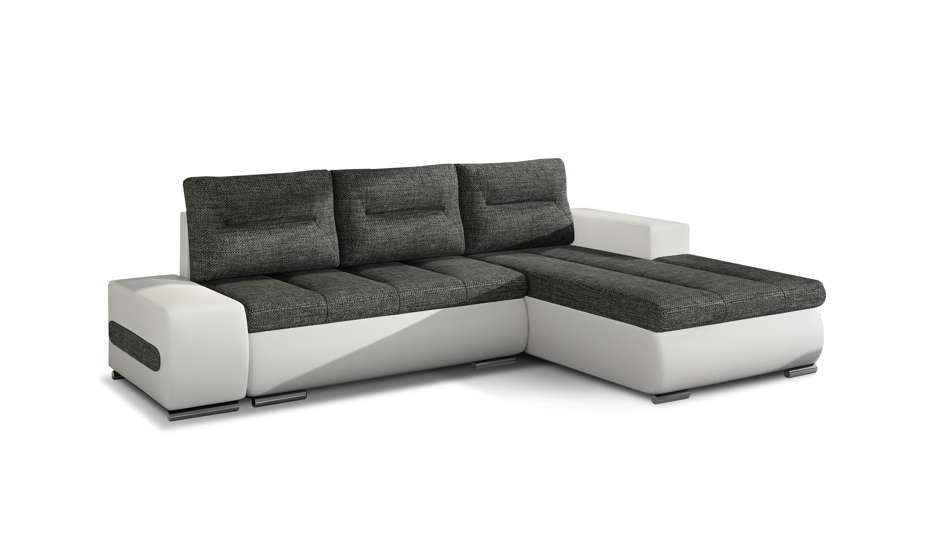 Rohová rozkládací pohovka Ottavio. Sníte o obývacím pokoji v industriální atmosféře? Pak vsaďte na rohovou pohovku Ottavio v minimalistické atmosféře. Tato rohová pohovka kombinuje jednoduchost a eleganci, klasický design, univerzální uspořádání a ty nejkvalitnější potahové materiály. Kombinace dvou barevných provedení poutá pozornost a to díky jemným dekorativním prvkem v podobě elegantního prošívání sedadel a opěradel. Tento model má rozměry 275x180x80 cm, zaručí Vám tak maximální pohodlí a navíc nezabírá nadměrné místo v obývacím pokoji. Díky zvlněné pružině a pěně T30 umístěné v sedadlech je roh pohodlný a pružný a zároveň adekvátně podpírá tělo při odpočinku. Další výhodou, zejména pro lidi, kteří oceňují funkční řešení, je skutečnost, že model Ottavio perfektně poslouží i jako místo na noční odpočinek. Zároveň poskytuje dostatek úložného prostoru na lůžkoviny. Rohová pohovka Ottavio - minimalistická forma, maximální pohodlí.