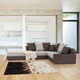 Rohová sedačka Petrana s praktickým taburetem. Je čalouněná kombinací ekokůže a látky šenil. Plocha na spaní vznikne prisunitím taburetky. O pohodlí při sezení se postarají polštáře jako opěrky zad.