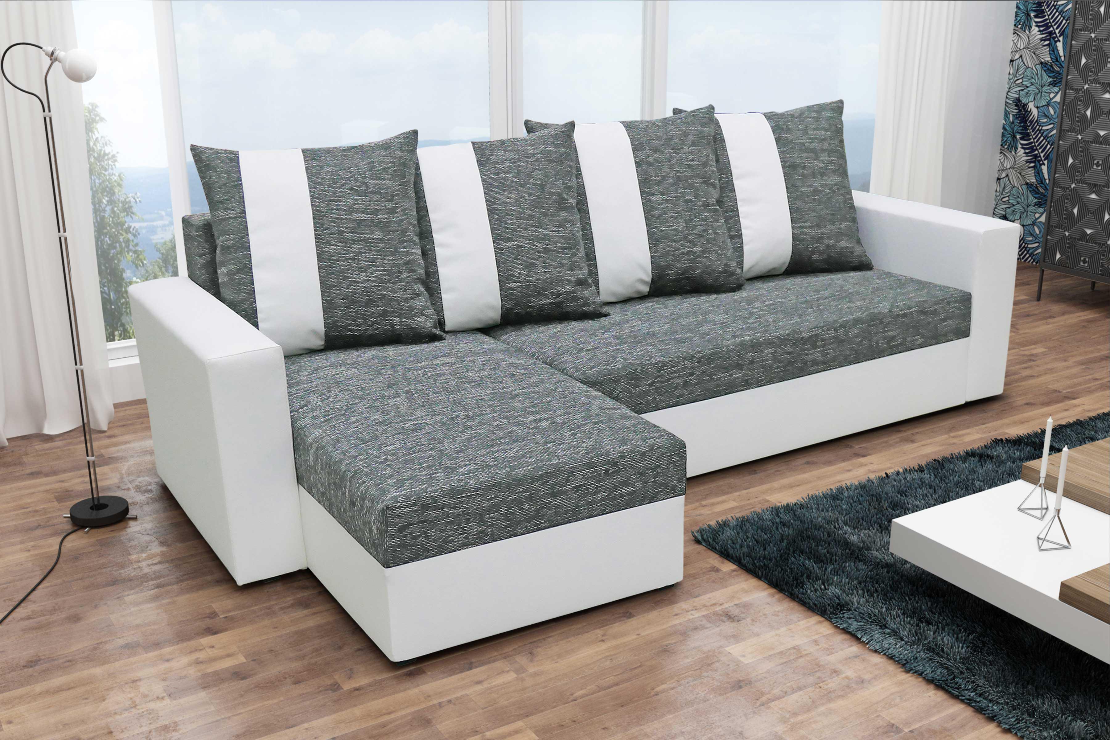 Stylová rohová sedačka Portia potěší všechny milovníky elegance. Je taktéž i velmi praktická, což určitě oceníte. Sedačku lze rozložit, čímž získáte plochu na spaní. Také má také šikovný úložný prostor, do kterého si víte uložit ložní prádlo a jiné doplňky. Je univerzální, a tak si ji můžete umístit do levého nebo pravého rohu místnosti.