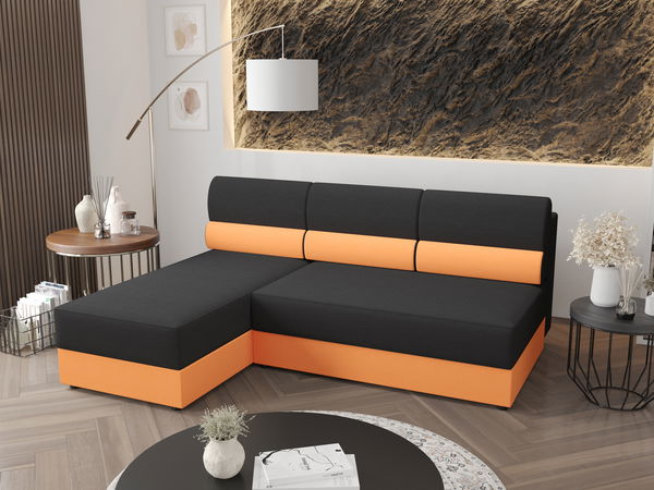 Rohová sedací souprava Radiant L1 (černá + oranžová) (L)
