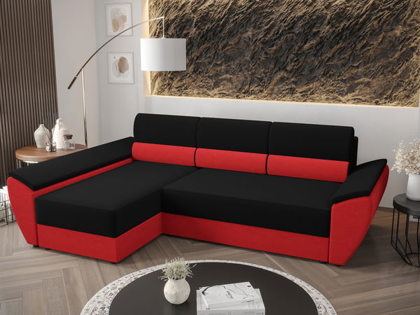 Rohová sedací souprava Radiant L3 (černá + červená) (L)