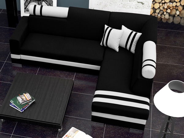 - Rohová sedací souprava Raisa (černá + bílá) (P)