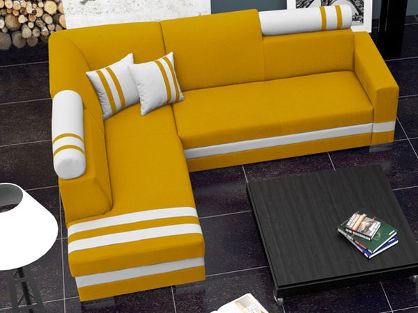 Rohová sedací souprava Raisa (žlutá + bílá) (L)