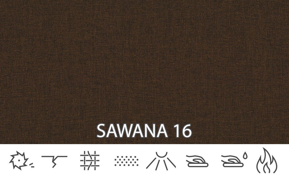 Potahová látka Sawana je jemná, na dotek příjemná pletená látka nenáročná na údržbu/čištění s jemnou a příjemnou texturou pletení. Je vyrobena ze syntetických vláken, která jsou odolná vůči světlu - nevyblednou. Je vyztužena síťkou, která zvyšuje jeho pevnost při roztržení. Nevystavujte látku vysokým teplotám – nežehlete, neperte na mokro a nepoužívejte prostředky k bělení. Péče a čištění pouze se speciálními prostředky pro čalouněný nábytek.
