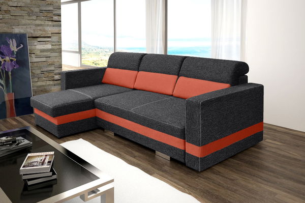 Rohová sedací souprava Rauli (černá + oranžová) (L)
