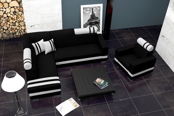 Rohová sedací souprava Reinaldo (černá + bílá) (L)
