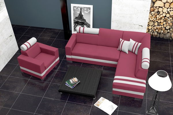 Rohová sedací souprava Reinaldo (růžová + bílá) (P)